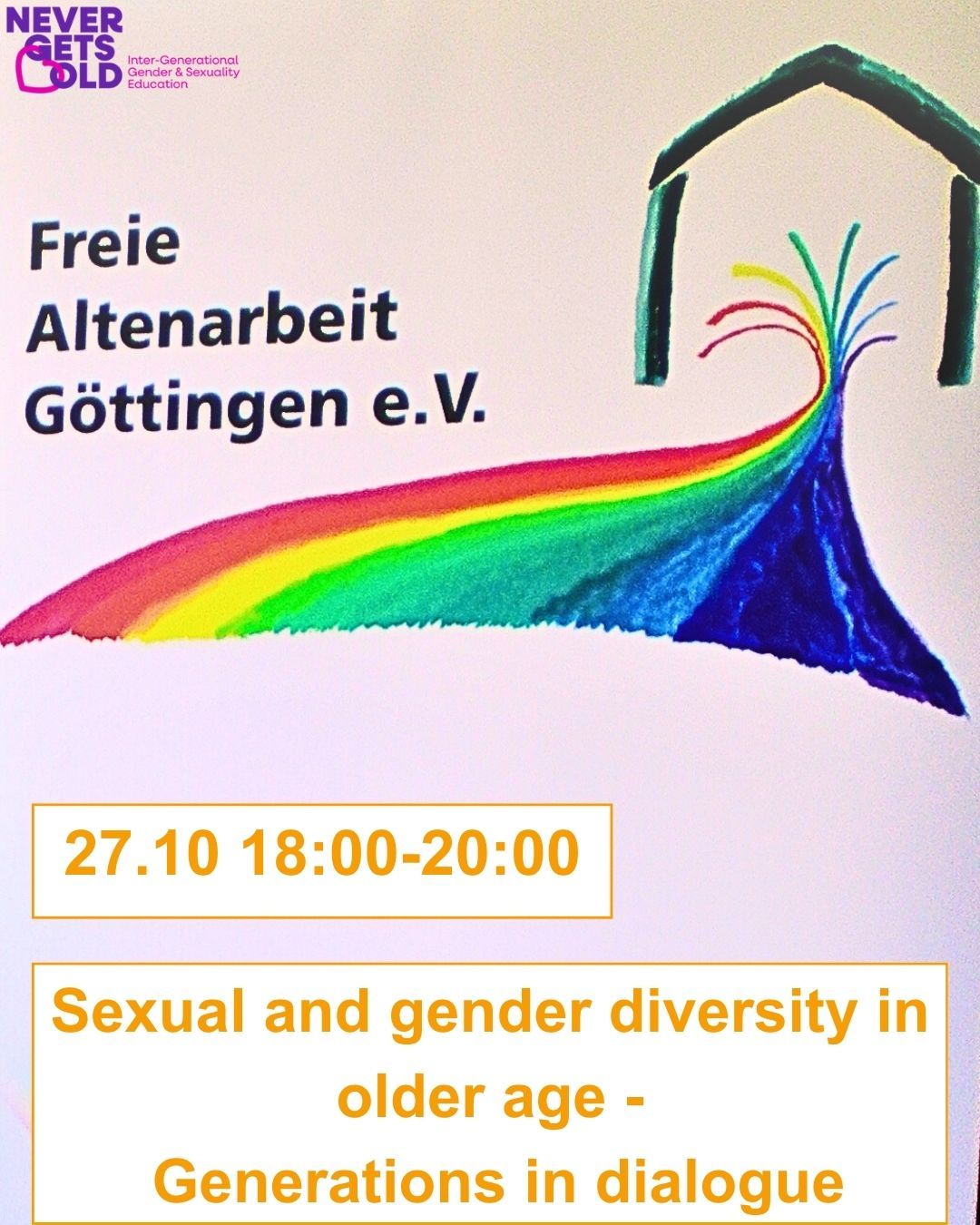 In the “Never Gets Old” project, we invite people of all generations to a moderated discussion in an open atmosphere – about sexuality, gender and diversity in old(er) age and across the lifespan. The focus is on changing perspectives and intergenerational dialogue. Adults aged 18 and over – young and old -, education and care professionals and anyone who is committed to an inclusive society and dialogue between generations are invited.